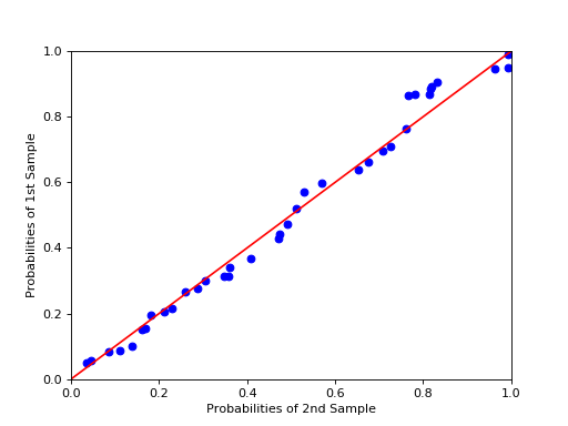 ppplot([xlabel, ylabel, line, other, ax])P-P plot of the percentiles (probabilities) of x versus the probabilities (percetiles) of a distribution. probplot([xlabel, ylabel, line, exceed, ax])Probability plot of the unscaled quantiles of x versus the probabilities of a distibution (not to be confused with a P-P plot). qqplot([xlabel, ylabel, line, other, ax])Q-Q plot of the quantiles of x versus the quantiles/ppf of a distribution or the quantiles of another ProbPlot instance. sample_percentiles()sample_quantiles()sorted_data()theoretical_percentiles()theoretical_quantiles()