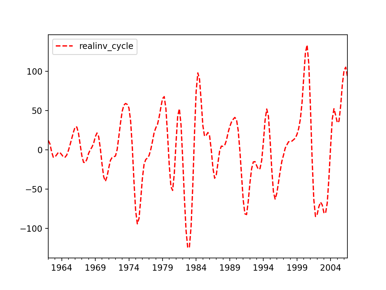 >>> cycles = sm.tsa.filters.bkfilter(dta[['realinv']], 6, 24, 12)