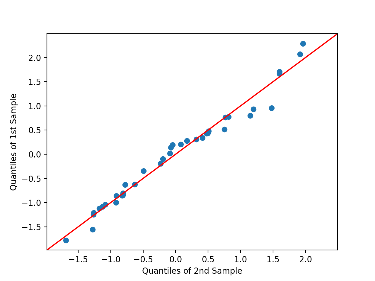 qqplot([xlabel, ylabel, line, other, ax, swap])Plot of the quantiles of x versus the quantiles/ppf of a distribution.