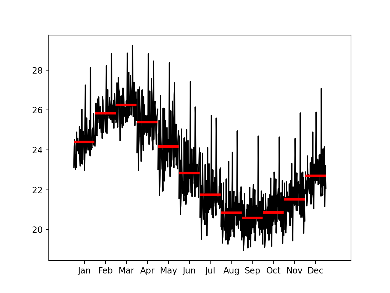 >>> import statsmodels.api as sm >>> import pandas as pd>>> dta = sm.datasets.elnino.load_pandas().data >>> dta['YEAR'] = dta.YEAR.astype(int).astype(str) >>> dta = dta.set_index('YEAR').T.unstack() >>> dates = pd.to_datetime(list(map(lambda x: '-'.join(x) + '-1', ... dta.index.values))) >>> dta.index = pd.DatetimeIndex(dates, freq='MS') >>> fig = sm.graphics.tsa.month_plot(dta)(